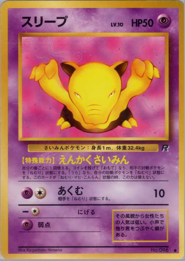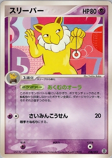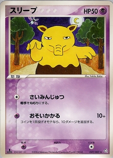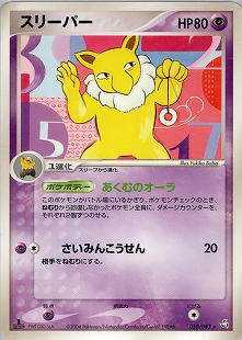 自分の番ごとに1回使える。コインを投げて「おもて」なら、相手の対戦ポケモンを「ねむり」状態にする。「うら」なら、自分の対戦ポケモンを「ねむり」状態にする。このカードが「ねむり・マヒ・こんらん」状態の時、この力は使えない。
