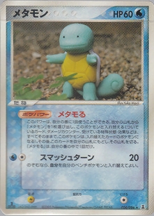 この力は、このカードがバトル場にいる時だけ、自分の番ごとに1回使える。コインを投げて「おもて」なら、場にいるポケモンから1匹を選び、それ以後このカードを、選んだポケモンと同じカードとしてあつかう。(ただし「進化・退化」はできず、この「すごいへんしん」の力は使うことができる)。「うら」なら、このカードはメタモンにもどる。エネルギーカードは、このカードについている限り、どの色のエネルギーとしても使える。このカードがバトル場をはなれた時や、「ねむり・マヒ・こんらん」状態の時、この「すごいへんしん」のカは使えず、このカードはメタモンにもどる。へんしんの元になっていたポケモンが場をはなれた時も、このカードはメタモンにもどる。