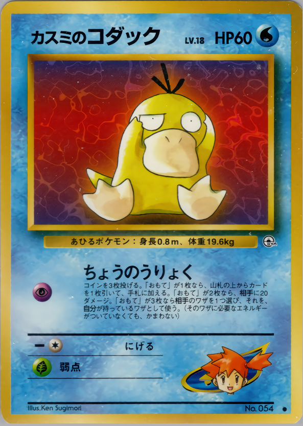 コインを3枚投げる。「おもて」が1枚なら、山札の上からカードを1枚引いて、手札に加える。「おもて」が2枚なら、相手に20ダメージ。「おもて」が3枚なら相手のワザを1つ選び、それを、自分が持っているワザとして使う。(そのワザに必要なエネルギーがついていなくても、かまわない)