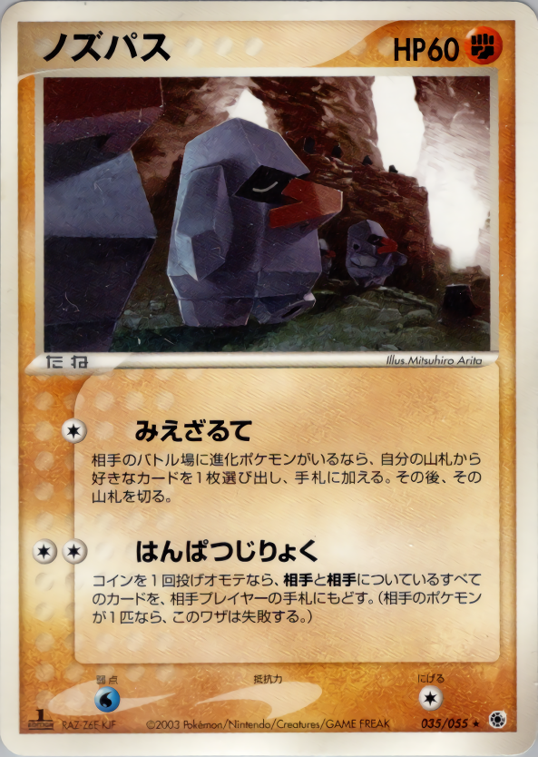 コインを1回投げオモテなら、相手と相手についているすべてのカードを、相手プレイヤーの手札にもどす。(相手のポケモンが1匹なら、このワザは失敗する。)