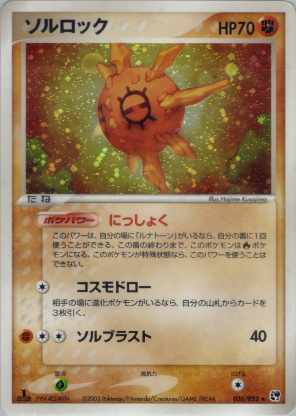 このパワーは、自分の場に「ルナトーン」がいるなら、自分の番に1回使うことができる。この番の終わりまで、このポケモンは炎ポケモンになる。このポケモンが特殊状態なら、このパワーを使うことはできない。