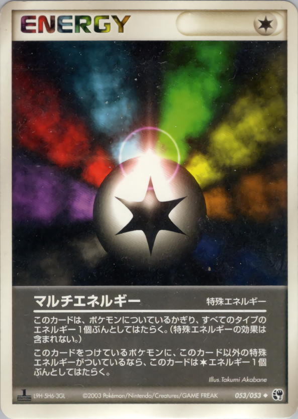このカードは、ポケモンについているかぎり、すべてのタイプのエネルギー1個ぶんとしてはたらく。(特殊エネルギーの効果は、含まれない。)