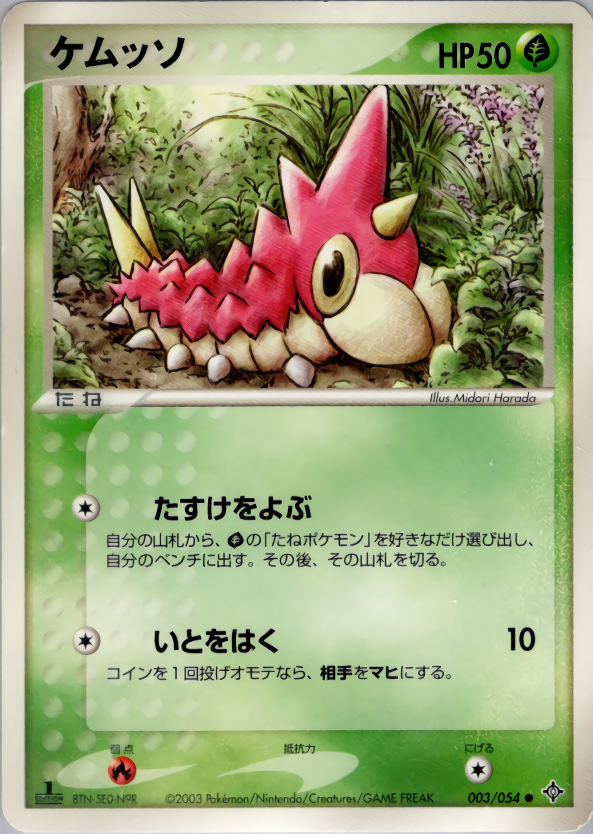 自分の山札から、草の「たねポケモン」を好きなだけ選び出し、自分のベンチに出す。その後、その山札を切る。