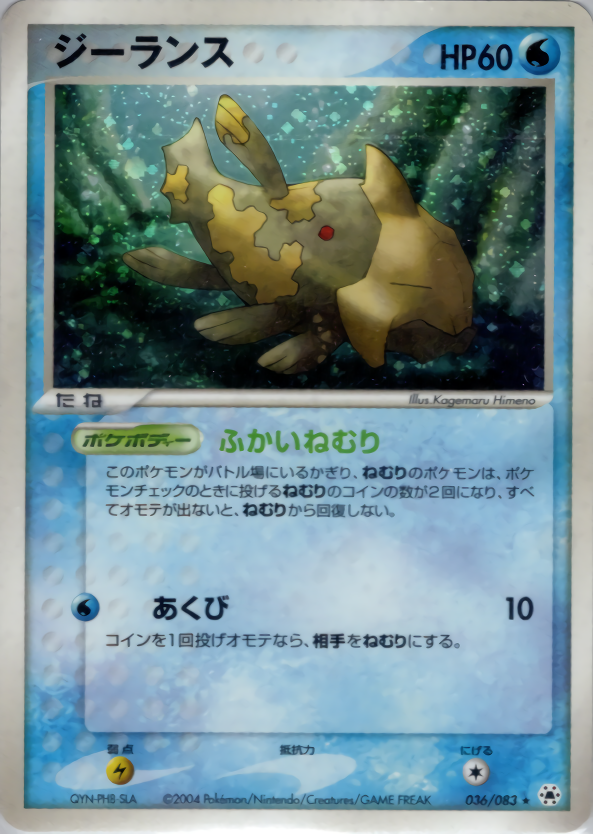 このポケモンがバトル場にいるかぎり、ねむりのポケモンは、ポケモンチェックのときに投げるねむりのコインの数が2回になり、すべてオモテが出ないと、ねむりから回復しない。