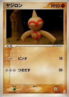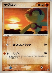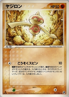このポケモンがバトル場にいるかぎり、おたがいのバトル場の「進化ポケモン」全員の、ワザに必要なエネルギーは、それぞれ無エネルギー1個ぶんずつ多くなる。