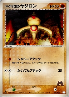 このパワーは、自分の番に1回使うことができる。自分の「マグマ団のポケモン」のエネルギーを1個選び、自分の別のポケモンにつけ替える。このポケモンが特殊状態なら、このパワーを使うことはできない。
