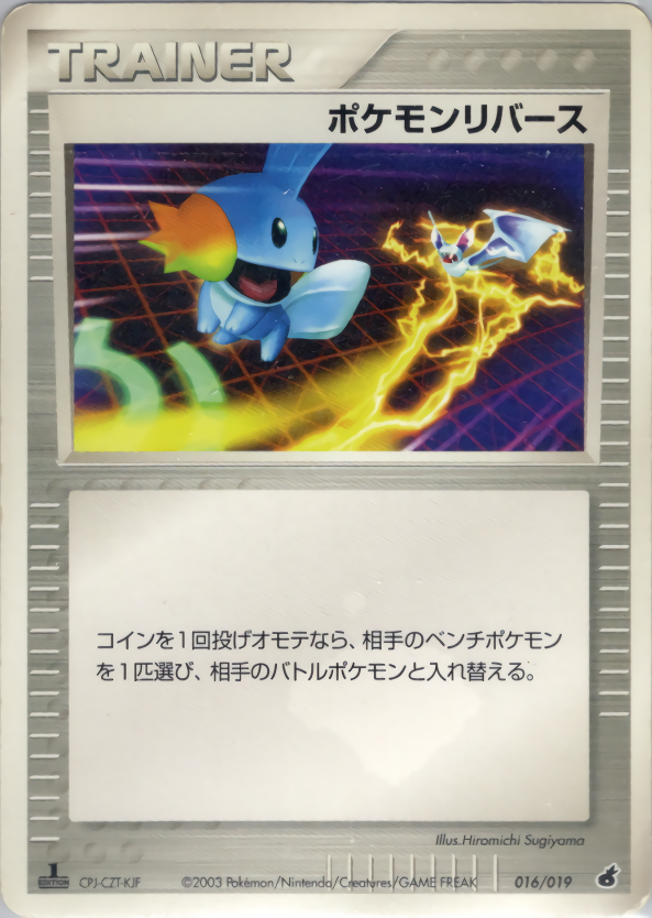 コインを1回投げオモテなら、相手のベンチポケモンを1匹選び、相手のバトルポケモンと入れ替える。