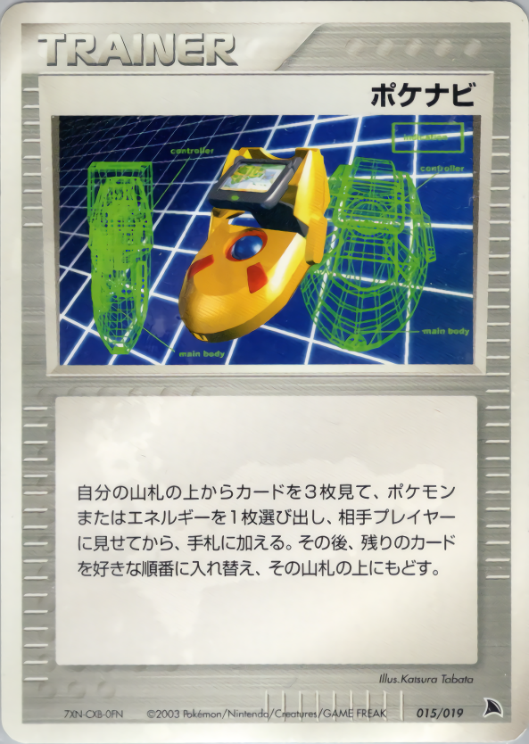 自分の山札の上からカードを3枚見て、ポケモンまたはエネルギーを1枚選び出し、相手プレイヤーに見せてから、手札に加える。その後、残りのカードを好きな順番に入れ替え、その山札の上にもどす。
