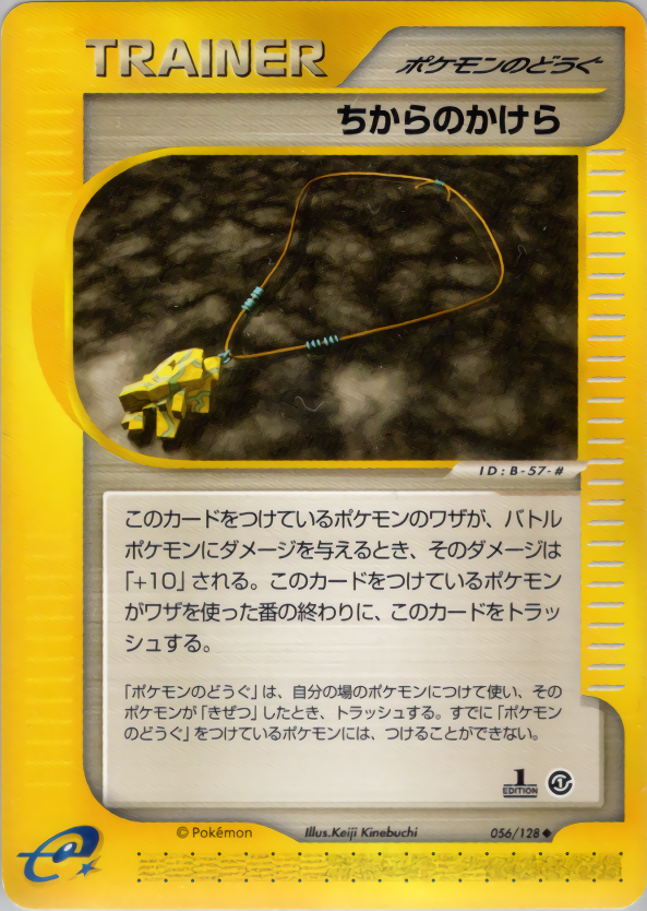 このカードをつけているポケモンのワザが、バトルポケモンにダメージを与えるとき、そのダメージは「+10」される。このカードをつけているポケモンがワザを使った番の終わりに、このカードをトラッシュする。