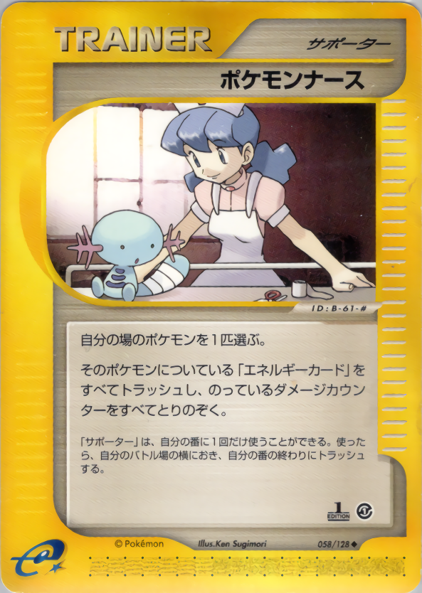 自分の場のポケモンを1匹選ぶ。そのポケモンについている「エネルギーカード」をすべてトラッシュし、のっているダメージカウンターをすべてとりのぞく。