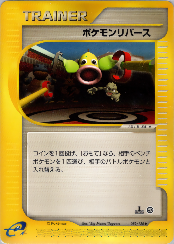コインを1回投げ、「おもて」なら、相手のベンチポケモンを1匹選び、相手のバトルポケモンと入れ替える。