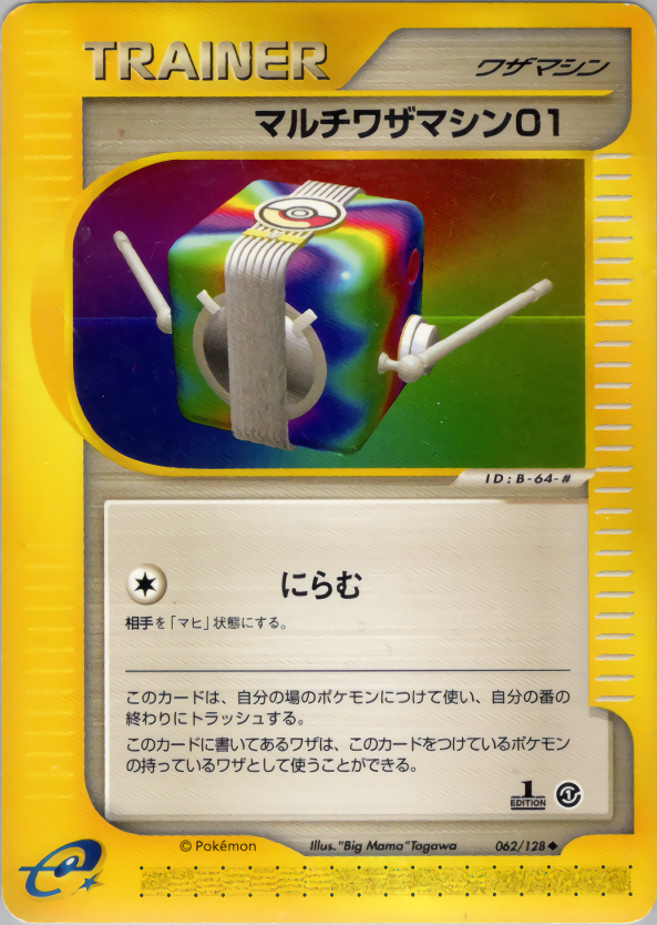 このカードは、自分の場のポケモンにつけて使い、自分の番の終わりにトラッシュする。このカードに書いてあるワザは、このカードをつけているポケモンの持っているワザとして使うことができる。