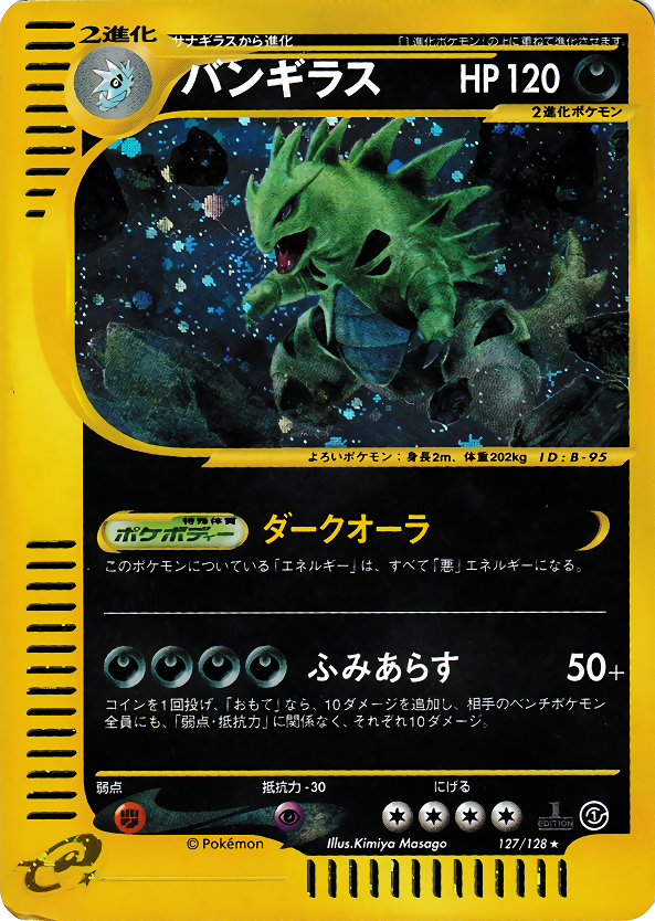 コインを1回投げ、「おもて」なら、10ダメージを追加し、相手のベンチポケモン全員にも、「弱点・抵抗力」に関係なく、それぞれ10ダメージ。