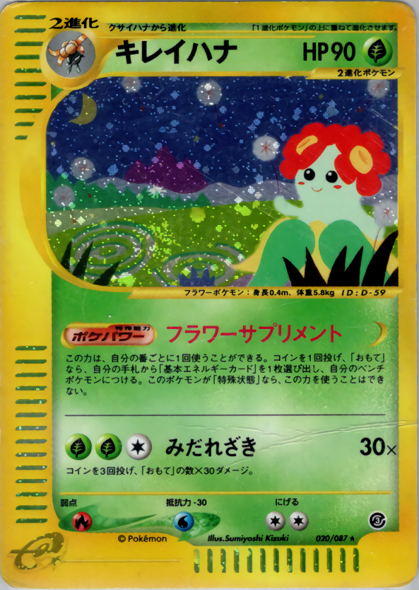 この力は、自分の番ごとに1回使うことができる。コインを1回投げ、「おもて」なら、自分の手札から「基本エネルギーカード」を1枚選び出し、自分のベンチポケモンにつける。このポケモンが「特殊状態」なら、この力を使うことはできない。