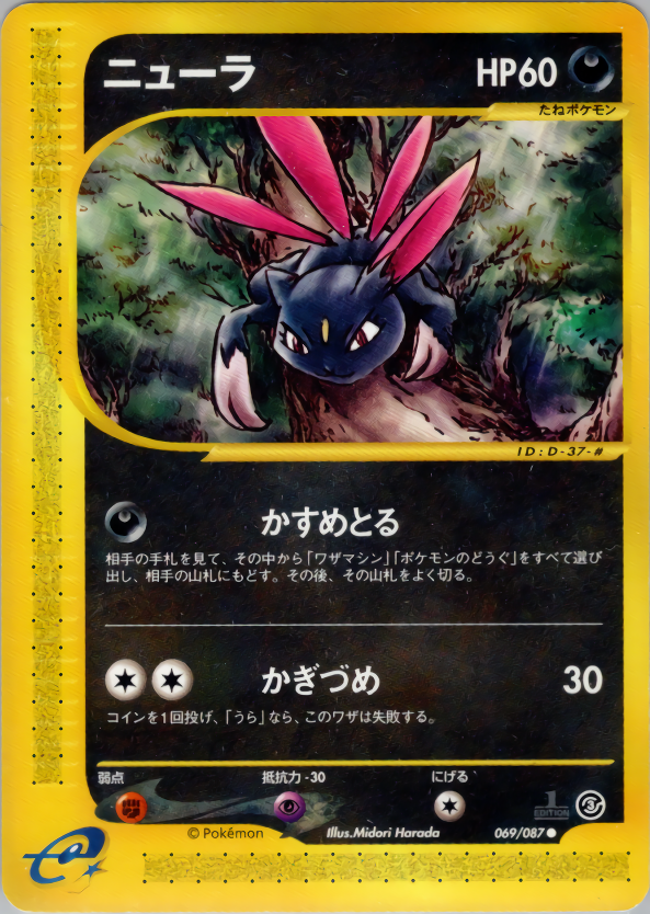 相手の手札を見て、その中から「ワザマシン」「ポケモンのどうぐ」をすべて選び出し、相手の山札にもどす。その後、その山札をよく切る。