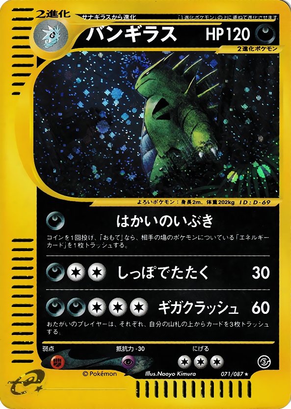 コインを1回投げ、「おもて」なら、相手の場のポケモンについている「エネルギーカード」を1枚トラッシュする。