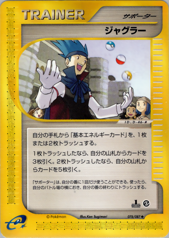 自分の手札から「基本エネルギーカード」を、1枚または2枚トラッシュする。1枚トラッシュしたなら、自分の山札からカードを3枚引く。2枚トラッシュしたなら、自分の山札からカードを5枚引く。