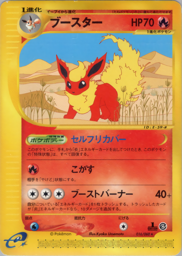 このポケモンに、手札から「炎」エネルギーカードを出してつけたとき、このポケモンの「特殊状態」は、すべて回復する。