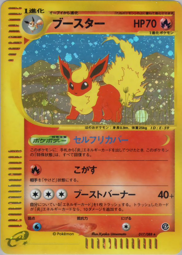 このポケモンに、手札から「炎」エネルギーカードを出してつけたとき、このポケモンの「特殊状態」は、すべて回復する。
