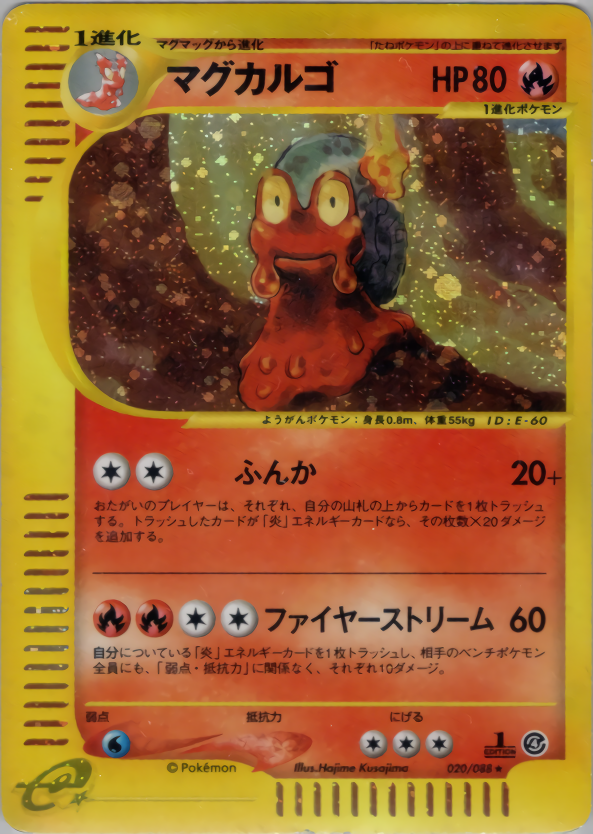 おたがいのプレイヤーは、それぞれ、自分の山札の上からカードを1枚トラッシュする。トラッシュしたカードが「炎」エネルギーカードなら、その枚数×20ダメージを追加する。