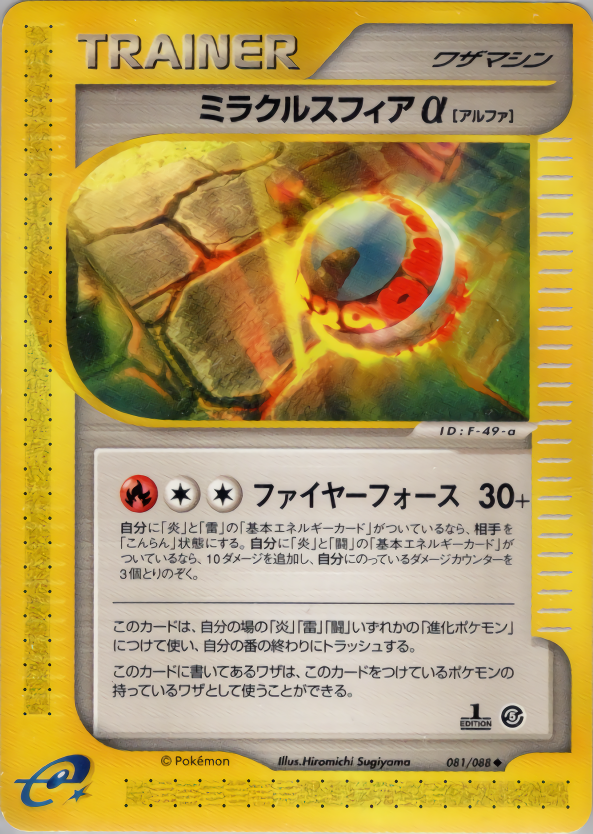 このカードは、自分の場の「炎」「雷」「闘」いずれかの「進化ポケモン」につけて使い、自分の番の終わりにトラッシュする。このカードに書いてあるワザは、このカードをつけているポケモンの持っているワザとして使うことができる。