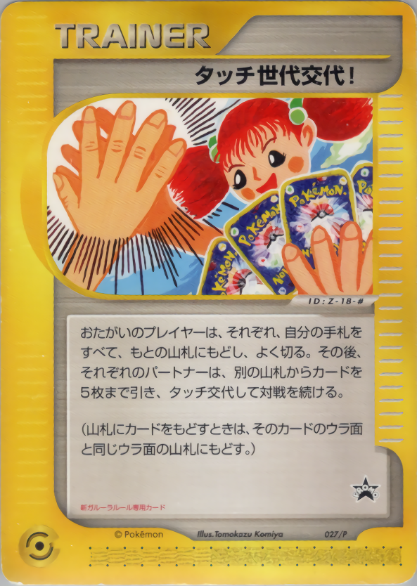 おたがいのプレイヤーは、それぞれ、自分の手札をすべて、もとの山札にもどし、よく切る。その後、それぞれのパートナーは、別の山札からカードを5枚まで引き、タッチ交代して対戦を続ける。(山札にカードをもどすときは、そのカードのウラ面と同じウラ面の山札にもどす。)