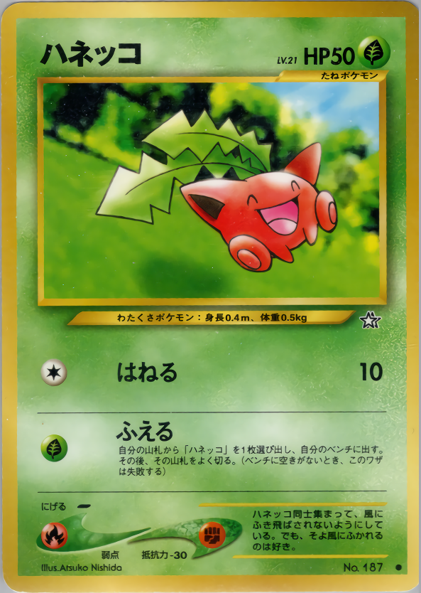 自分の山札から「ハネッコ」を1枚選び出し、自分のベンチに出す。その後、その山札をよく切る。(ベンチに空きがないとき、このワザは失敗する)