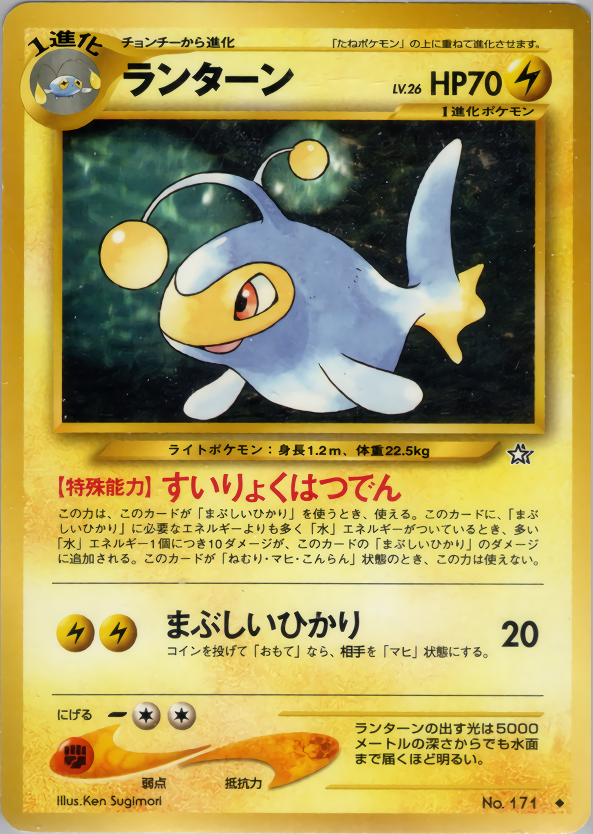 この力は、このカードが「まぶしいひかり」を使うとき、使える。このカードに、「まぶしいひかり」に必要なエネルギーよりも多く「水」エネルギーがついているとき、多い「水」エネルギー1個につき10ダメージが、このカードの「まぶしいひかり」のダメージに追加される。このカードが「ねむり・マヒ・こんらん」状態のとき、この力は使えない。
