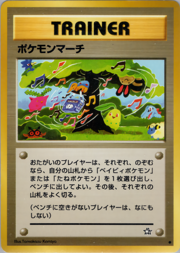 おたがいのプレイヤーは、それぞれ、のぞむなら、自分の山札から「ベイビィポケモン」または「たねポケモン」を1枚選び出し、ベンチに出してよい。その後、それぞれの山札をよく切る。(ベンチに空きがないプレイヤーは、なにもしない)