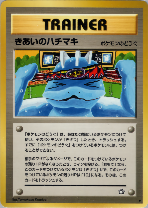 相手のワザによるダメージで、このカードをつけているポケモンの残りHPがなくなったとき、コインを投げる。「おもて」なら、このカードをつけているポケモンは「きぜつ」せず、このカードをつけているポケモンの残りHPは「10」になる。その後、このカードをトラッシュする。