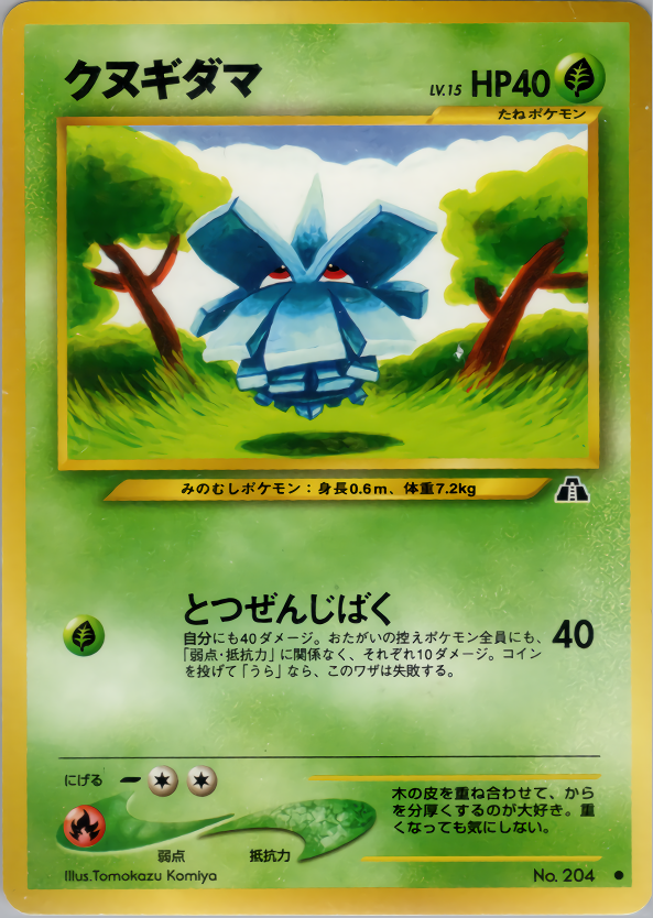 自分にも40ダメージ。おたがいの控えポケモン全員にも、「弱点・抵抗力」に関係なく、それぞれ10ダメージ。コインを投げて「うら」なら、このワザは失敗する。