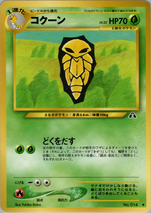 次の相手の番、このカードが相手のワザによるダメージを受けたとき(それによって、このカードが「きぜつ」しても)、相手を「どく」状態にし、相手の控えポケモン全員に、「弱点・抵抗力」に関係なく、それぞれ10ダメージ。