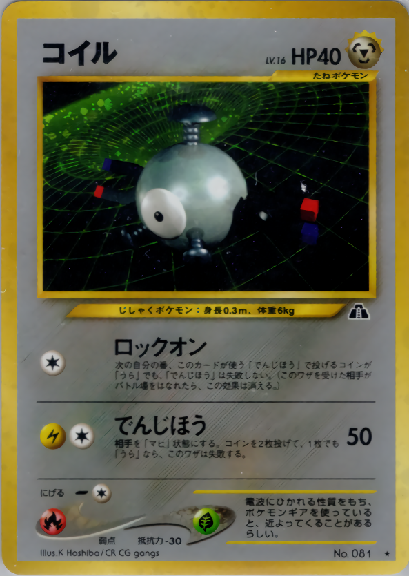 次の自分の番、このカードが使う「でんじほう」で投げるコインが「うら」でも、「でんじほう」は失敗しない。(このワザを受けた相手がバトル場をはなれたら、この効果は消える。)