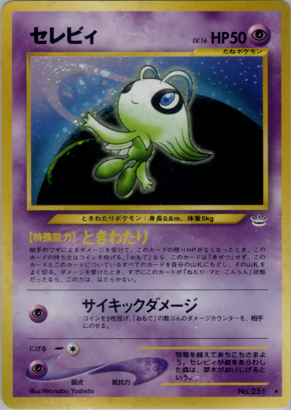 相手のワザによるダメージを受けて、このカードの残りHPがなくなったとき、このカードの持ち主はコインを投げる。「おもて」なら、このカードは「きぜつ」せず、このカードとこのカードについているすべてのカードを自分の山札にもどし、その山札をよく切る。ダメージを受けたとき、すでにこのカードが「ねむり・マヒ・こんらん」状態だったなら、この力は、はたらかない。