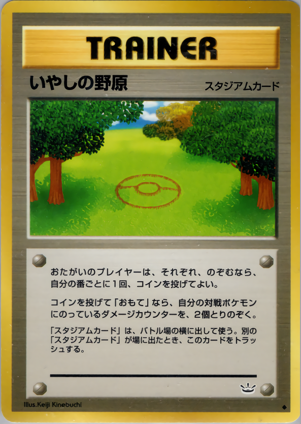 「スタジアムカード」は、バトル場の横に出して使う。別の「スタジアムカード」が場に出たとき、このカードをトラッシュする。