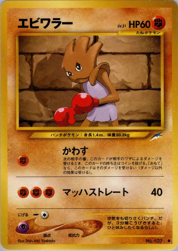 次の相手の番、このカードが相手のワザによるダメージを受けるとき、このカードの持ち主はコインを投げる。「おもて」なら、このカードはそのダメージを受けない(ダメージ以外の効果は受ける)。