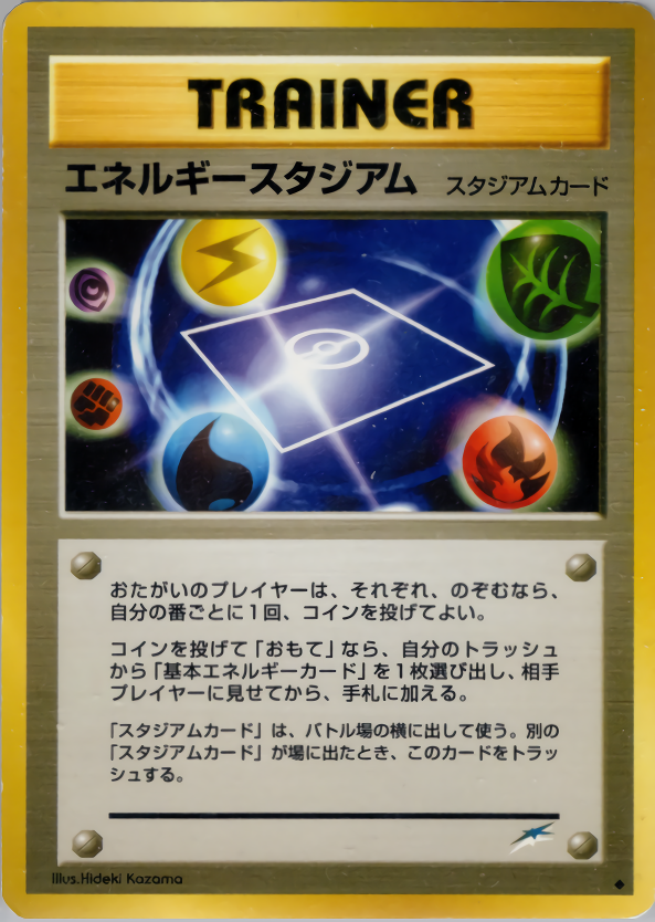 「スタジアムカード」は、バトル場の横に出して使う。別の「スタジアムカード」が場に出たとき、このカードをトラッシュする。