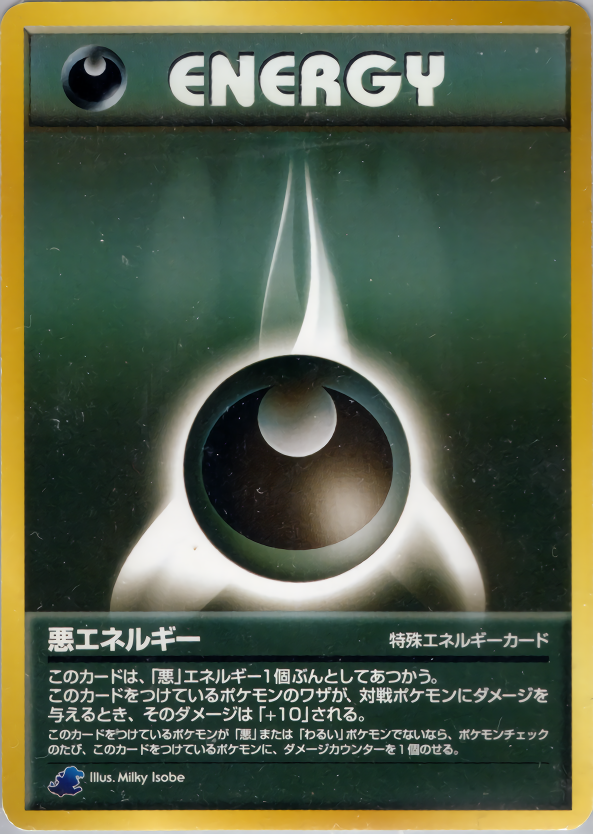 このカードは、「悪」エネルギー1個ぶんとしてあつかう。このカードをつけているポケモンのワザが、対戦ポケモンにダメージを与えるとき、そのダメージは「+10」される。