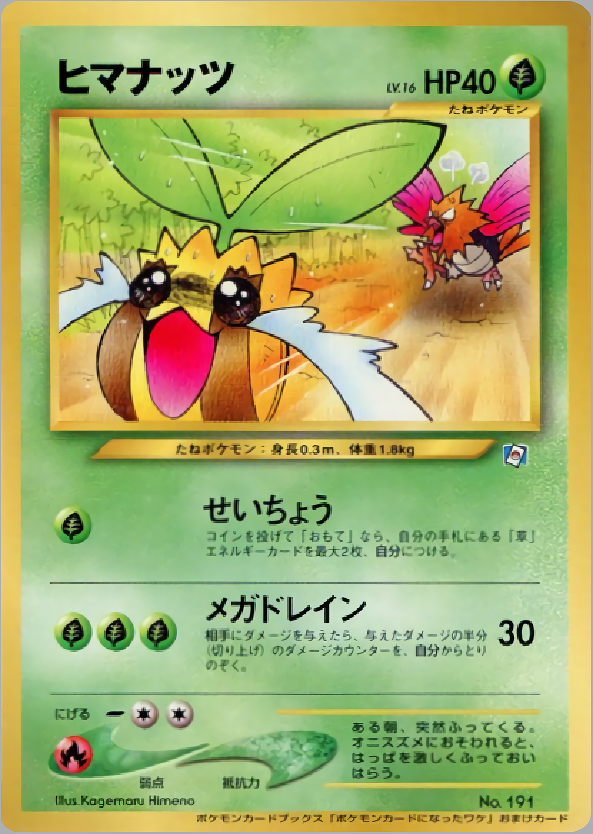 コインを投げて「おもて」なら、自分の手札にある「草」エネルギーカードを最大2枚、自分につける。