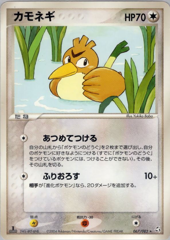 自分の山札から「ポケモンのどうぐ」を2枚まで選び出し、自分のポケモンに好きなようにつける(すでに「ポケモンのどうぐ」をつけているポケモンには、つけることができない)。その後、その山札を切る。