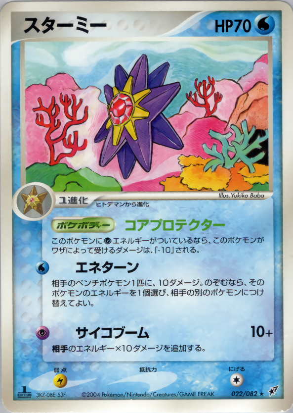このポケモンに超のエネルギーがついているなら、このポケモンがワザによって受けるダメージは、「-10」される。