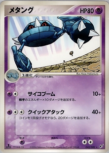 このパワーは、自分の番に1回使うことができる。自分のトラッシュから、超エネルギーまたは鋼エネルギーを1枚選び出し、自分のバトルポケモンにつける。その後、そのエネルギーをつけたポケモンにダメージカウンターを1個のせる。このポケモンが特殊状態なら、このパワーを使うことはできない。