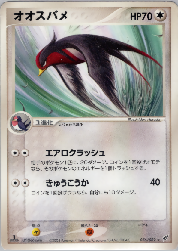 相手のポケモン1匹に、20ダメージ。コインを1回投げオモテなら、そのポケモンのエネルギーを1個トラッシュする。