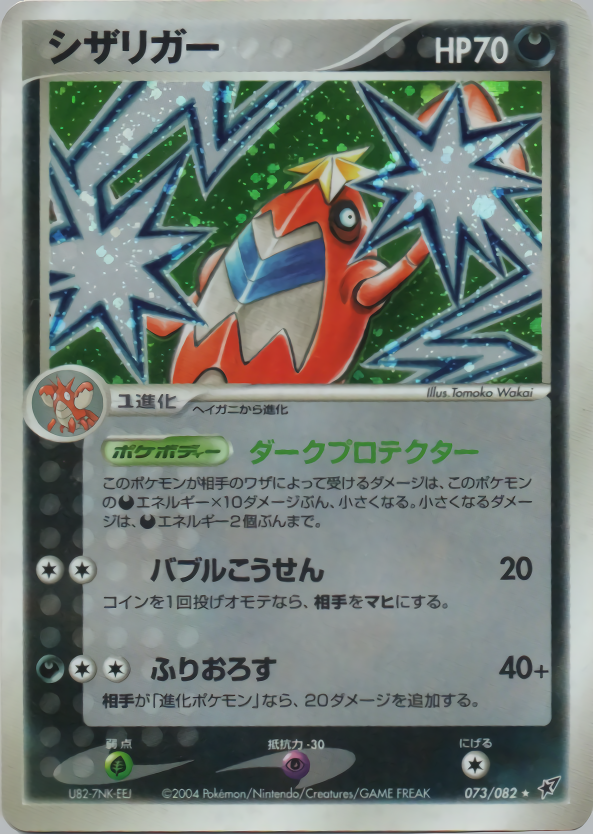 このポケモンが相手のワザによって受けるダメージは、このポケモンの悪エネルギー×10ダメージぶん、小さくなる。小さくなるダメージは、悪エネルギー2個ぶんまで。