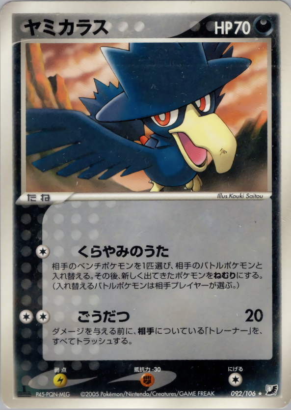 相手のベンチポケモンを1匹選び、相手のバトルポケモンと入れ替える。その後、新しく出てきたポケモンをねむりにする。(入れ替えるバトルポケモンは相手プレイヤーが選ぶ。)