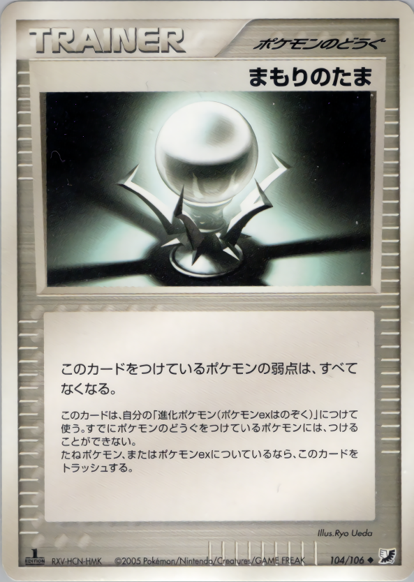 このカードは、自分の「進化ポケモン(ポケモンexはのぞく)」につけて使う。すでにポケモンのどうぐをつけているポケモンには、つけることができない。たねポケモン、またはポケモンexについているなら、このカードをトラッシュする。