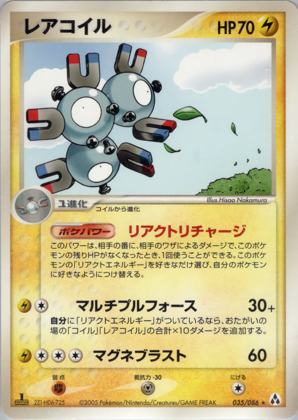 自分に「リアクトエネルギー」がついているなら、おたがいの場の「コイル」「レアコイル」の合計×10ダメージを追加する。