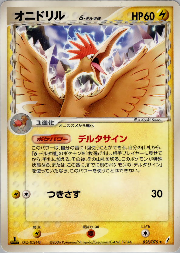 このパワーは、自分の番に1回使うことができる。自分の山札から、「δ-デルタ種」のポケモンを1枚選び出し、相手プレイヤーに見せてから、手札に加える。その後、その山札を切る。このポケモンが特殊状態なら、または、この番に、すでに別のポケモンの「デルタサイン」を使っていたなら、このパワーを使うことはできない。