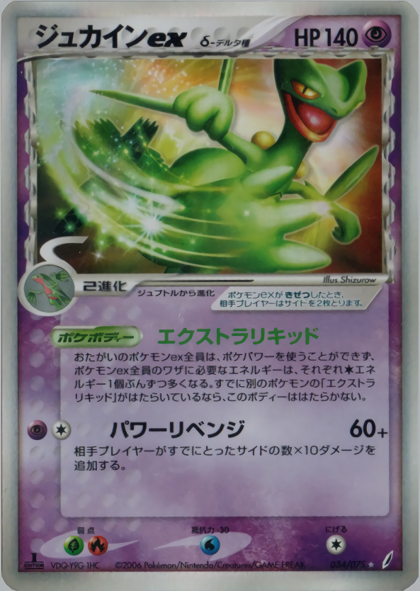 おたがいのポケモンex全員は、ポケパワーを使うことができず、ポケモンex全員のワザに必要なエネルギーは、それぞれ無エネルギー1個ぶんずつ多くなる。すでに別のポケモンの「エクストラリキッド」がはたらいているなら、このボディーははたらかない。