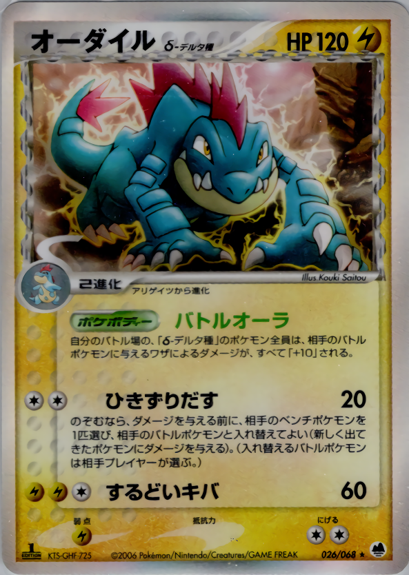 自分のバトル場の、「δ-デルタ種」のポケモン全員は、相手のバトルポケモンに与えるワザによるダメージが、すべて「+10」される。